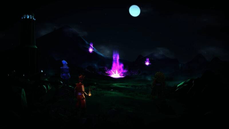 咒术师法术释放伴随符文流转与骰子碎裂的粒子效果,Boss 战中的邪神触须、血肉融合体等模型设计极具视觉冲击力。
