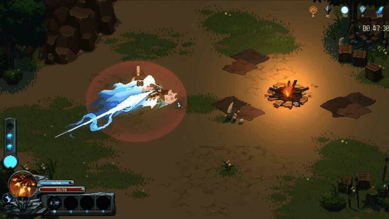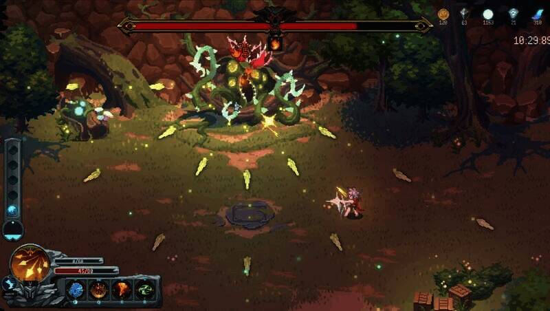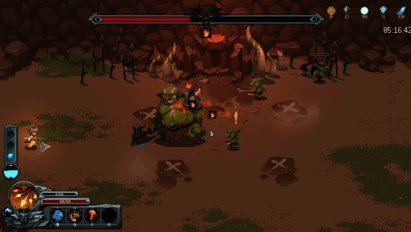 游戏采用动态2.5D视角,将手绘风场景与粒子特效相结合。地牢中摇曳的火把光影、角色技能释放时的元素轨迹都经过精细打磨。尽管是复古像素美术,但Boss战时的全屏震屏特效与多阶段形态变化,仍能带来强烈的视觉冲击。搭配环境音效与随战斗节奏变化的背景音乐,让玩家沉浸于剑与魔法的热血对决中。