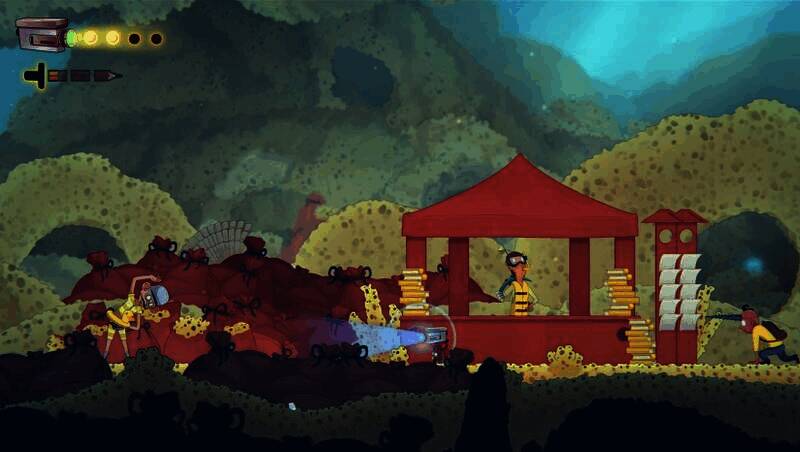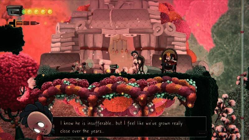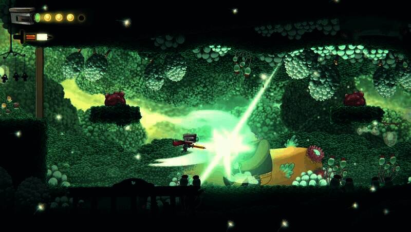 作为类银河战士恶魔城游戏,该作融合了横版动作、平台跳跃、解谜和碎片化叙事元素。玩家要在超大地图中探索隐藏区域,利用约翰的“投影仪头部”扫描环境、收集线索以解锁剧情。战斗系统以普攻、炸弹和蓄力吸血攻击为主,虽然略显单一但强调节奏和策略。Boss战设计独特,例如“柔软森林”中象征父母争吵的怪物,玩家需结合场景机制破解其攻击模式。此外,游戏通过“念头即命运”的选择机制,让玩家的行动影响光明与黑暗的边界,使叙事具有动态变化。