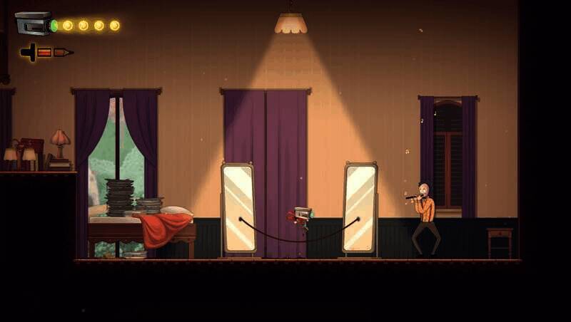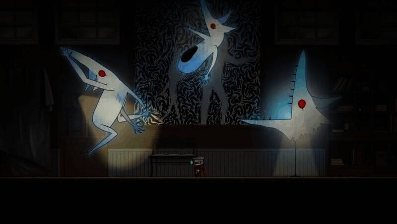 游戏采用全手绘美术风格,画面既有复古美漫的粗犷,又有儿童涂鸦的天真。场景如“柔软森林”用扭曲的线条和低饱和色调营造出压抑感,而角色设计充满反差,比如灯塔先生的灯泡头与约翰的投影仪头部,既荒诞又契合“照亮内心”的主题。动态光影和粒子效果进一步增强了超现实感,如暗室中的幽蓝微光、Boss战时的血色雾气,让玩家沉浸在虚实交织的梦境世界。