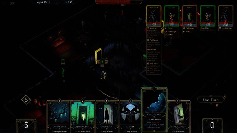 玩家需设计如迷宫般的宅邸结构,放置陷阱、房间和特殊机关来保护核心“心室”。卡牌系统提供多样建筑资源,像“毛骨悚然的尖叫”等,增强恐怖效果。