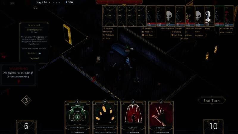 可解锁超百种卡牌自由组合战术,如“群体幻觉”可影响多名探险者,“致命陷阱”可造成物理伤害。