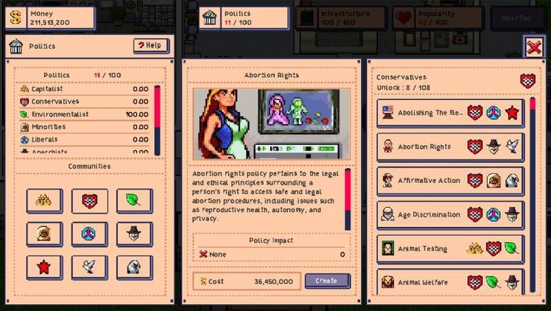 总统崛起电脑版是一款融合了模拟、政治和建筑管理元素的策略管理游戏,由Ilusif Studio精心开发制作,未来将在steam平台上线。在游戏里,玩家化身为新兴国家的总统,每一个决策都将影响国家的走向。需平衡经济、管理政策、处理公众请求,应对政治挑战,以此保障国家的稳定与发展。