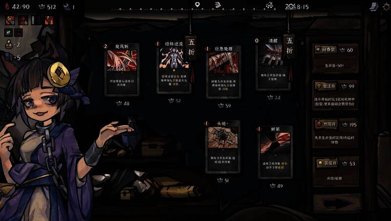 击败BOSS后,玩家可从随机的三种心法中挑选,像莫三的“汲血”回血、阿紫的毒伤增益等,结合卡牌能形成多样流派。