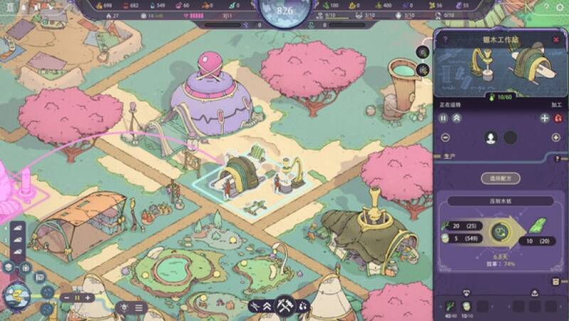 玩家派遣远征小队探索周边环境,分析动植物特性,利用知识优化资源采集与城市建设。比如研究“颤动的花”或“遮阳树”等植物可解锁可持续资源利用方案。