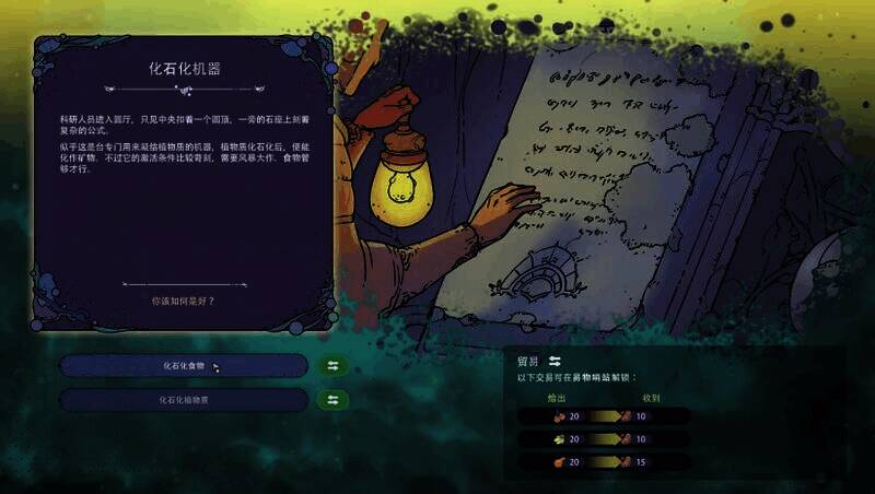 玩家派遣远征小队探索周边环境,分析动植物特性,运用获取的知识优化资源采集和城市建设。比如研究“颤动的花”“遮阳树”等植物,可解锁可持续资源利用方案。