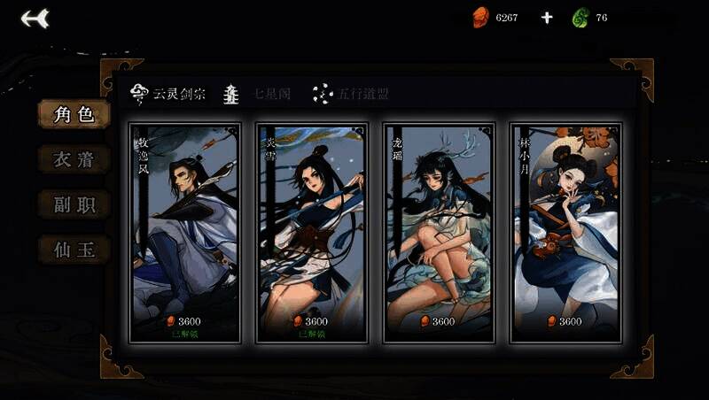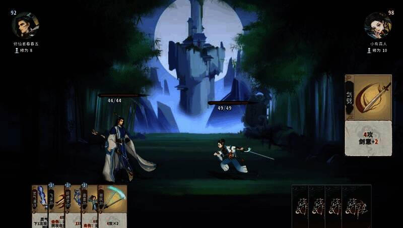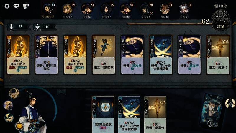每个角色都拥有独特的被动技能,突破境界时可选择“仙命”来强化卡组,例如增加抽牌次数或特定属性。角色与副职业(如琴师、画师)的多样组合衍生出丰富的流派,如“云剑流”连击或“五行道盟”属性叠加。