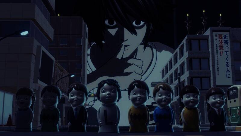 游戏采用暗黑卡通渲染风格,在Unity引擎的助力下还原了动漫的压抑氛围。场景细节丰富,基拉发动笔记时血色符文缠绕页面,L的监控室布满实时数据流与地图投影。角色动态表情经过夸张化处理,如被指控时瞳孔震颤、冷汗滴落,增强了戏剧张力。过场动画穿插原作分镜式剪辑,配合低沉旁白与悬疑配乐,进一步强化了“生死规则”的压迫感。