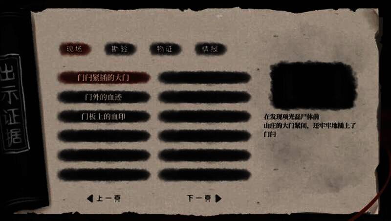 玩家能够在山庄内自由行动,前往不同地点仔细观察案发现场,收集诸如凶器、血迹、可疑物品等物证,从而还原案件的发生过程。