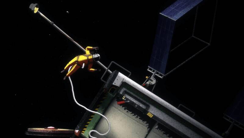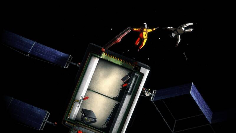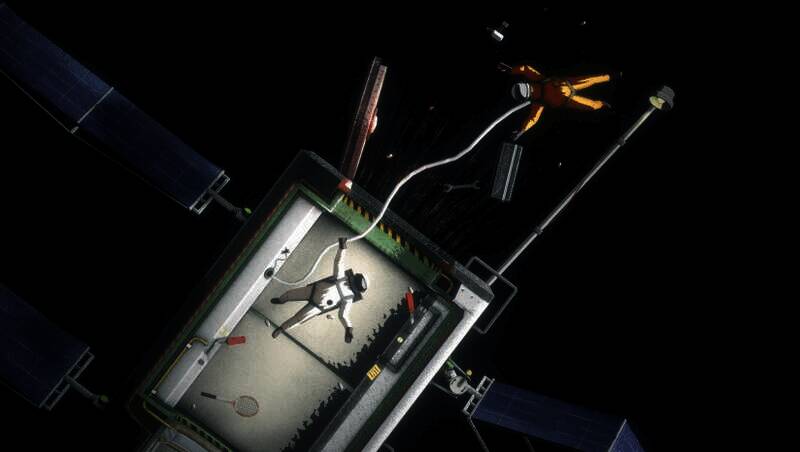 把太空宇航员的手和臂缠在一起,在一系列不稳定的物理模拟恒星场景中推、拉、扭,没有重力,什么都不会静止,什么都不会安全,什么都不会简单。