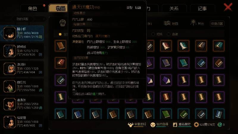 游戏中存在多种外功和内功秘籍供玩家学习和修炼。玩家通过不断练习提高熟练度,能够有效增强角色的战斗力。此外,玩家还可以将所学的两种武学进行结合,领悟出进阶武学。