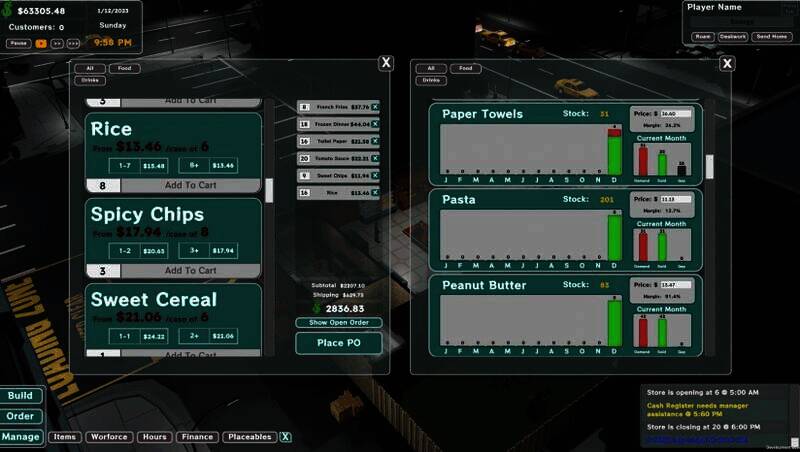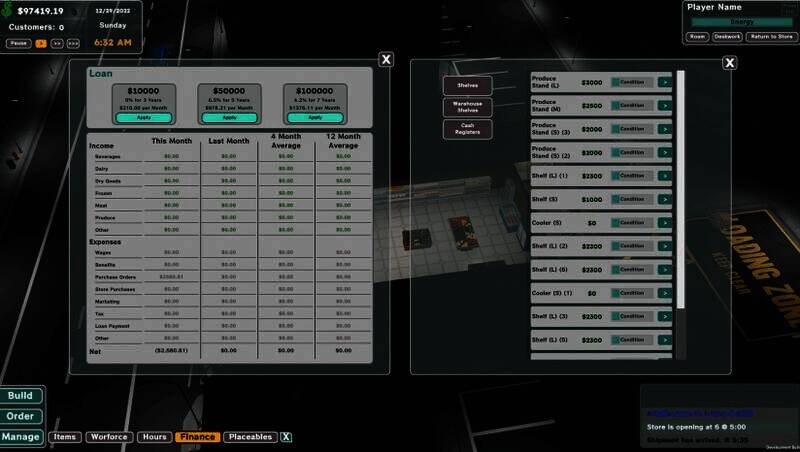 玩家将白手起家开启单人旅程,可通过购置货架、收银机、物料搬运设备,招聘员工,对商店进行扩展以及购买更多店铺来不断发展。你既可以坐在办公桌前轻松管理仓库,也能亲身参与店铺运营,一切选择权都掌握在自己手中。