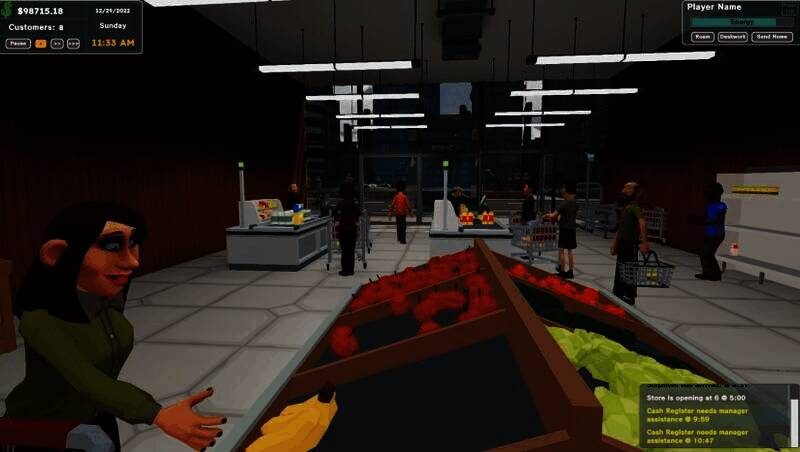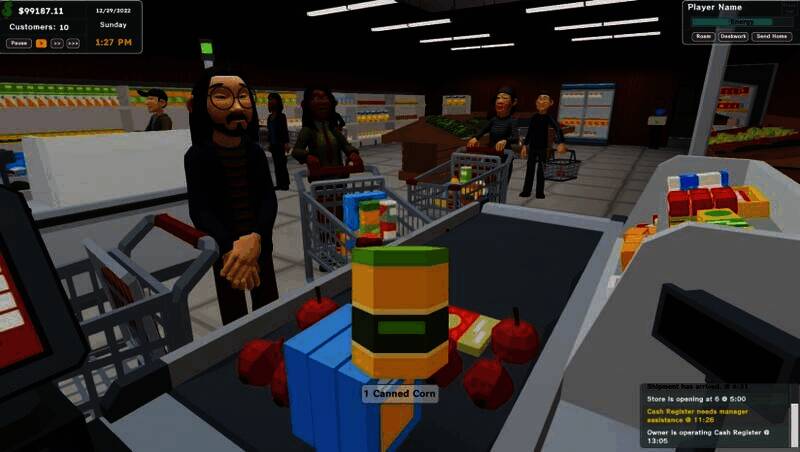 若想挑战最优秀收银员的速度,或者节省开支,玩家可亲自操作收银机,快速扫描商品以避免顾客长时间排队和不满。