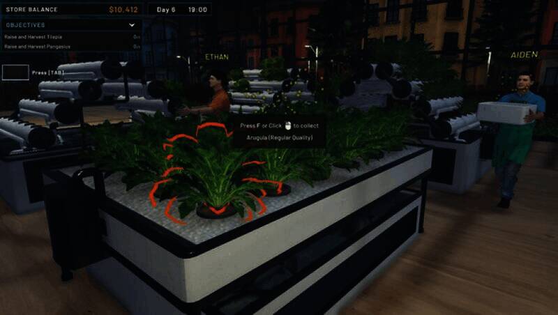 3、商品成熟后收割并在商店售卖。开发高效收割技术,减少浪费、提高产量,将产品运送至游戏内商店,合理安排商品吸引顾客。