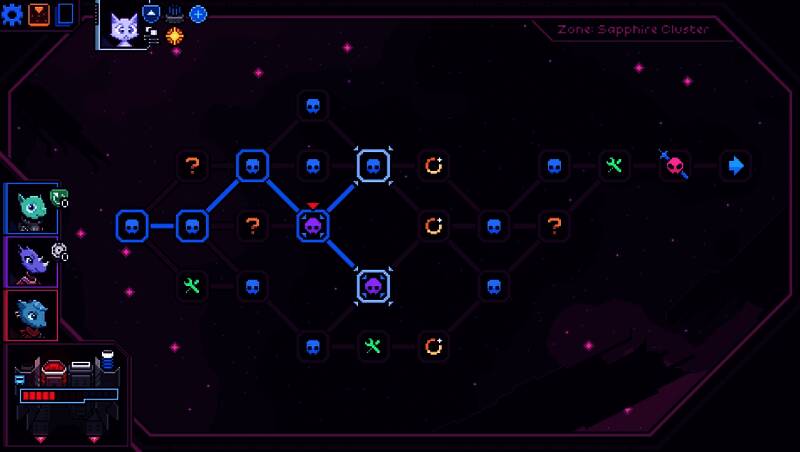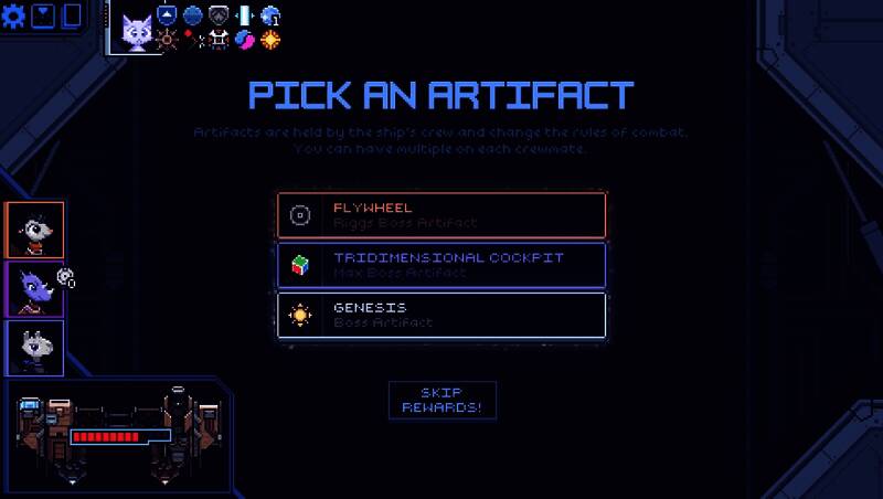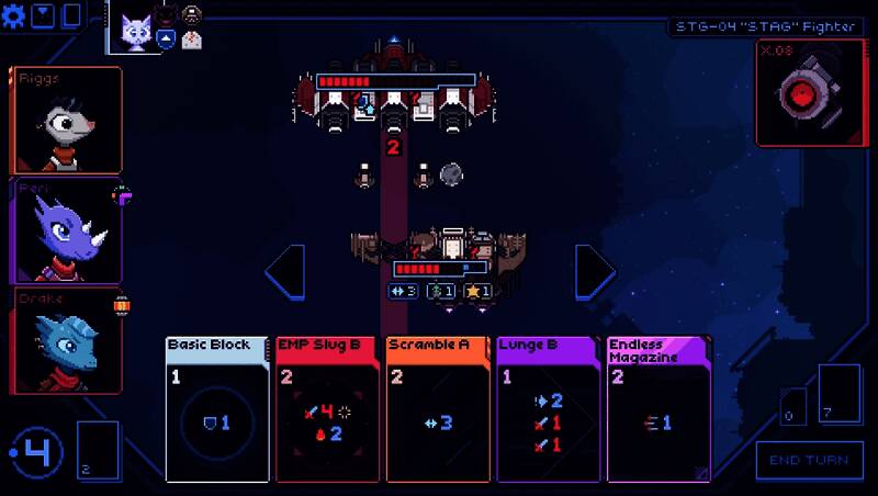 游戏中有八个可选角色,每个角色都有独特的战斗风格和个人故事。玩家可以带三个角色,混合搭配他们的卡牌组。在开始游戏之前,有上百种不同的角色和舰船组合可供选择,不同的组合会带来不同的游戏体验。