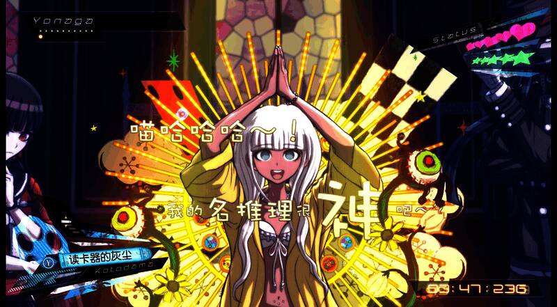 《新弹丸论破V3》电脑版采用3D场景搭配2D角色和物件的“2.5D”表现风格。画面有具厚度感的立绘和CG,充满神秘氛围。PS4版对应每秒60张的描写速度,走廊、教室长满绿草,美丽独特。整体风格与前作一致,画面表现力远超前两代。