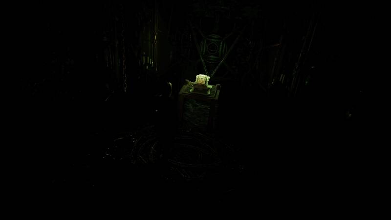 南美殖民风格建筑与邪教图腾融合,破败宗教壁画、扭曲金属结构强化克苏鲁式视觉隐喻。