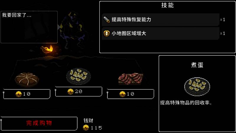 每撑过一天(约1分钟),商人会出现,玩家可用金币购买回血道具、临时增益(像攻击附加剑气、拾取金币无敌等),还能解锁新武器。