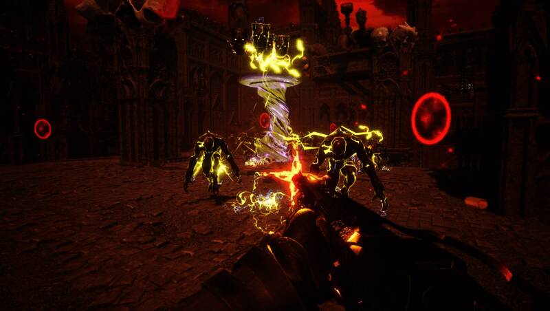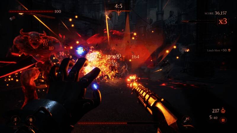 游戏的核心玩法围绕高速战斗与成长系统展开。玩家可以使用经过地狱改造的一战、二战时期的枪械,如霰弹枪与机枪,并结合地狱烈焰、幽魂化身等法术进行战术搭配,灵活应对战场变化。