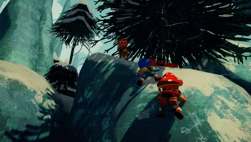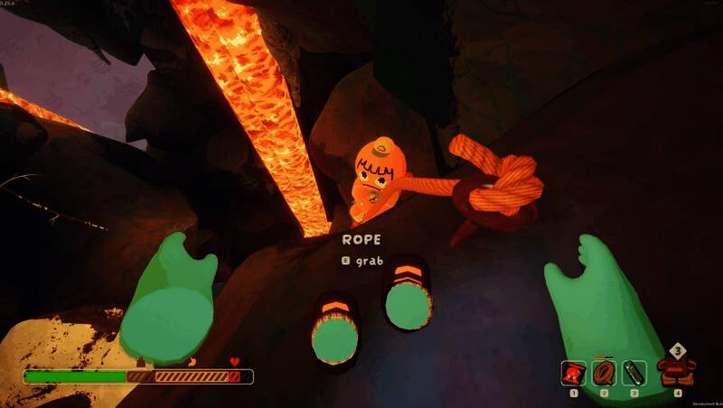 在视觉呈现上,《PEAK》采用低多边形风格结合动态光影效果,生动展现了火山区的熔岩流动、雪原的冰雪反光以及峡谷地带的岩层裂隙等场景。不同地貌拥有鲜明的视觉特征,强化了玩家的沉浸感。