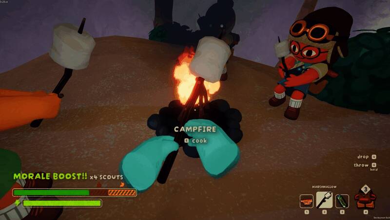 《PEAK》的核心玩法围绕团队协作、生存挑战和道具策略展开。支持1-4人联机合作,玩家需要互相配合完成岩壁攀登、绳索铺设以及处理突发伤病等任务。游戏中包含火山、雪原等四大生态区域,每种环境都带来独特的挑战,同时随机天气系统增加了游戏的不确定性与紧张感。