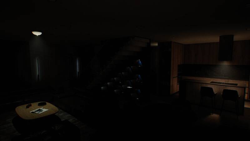 在视觉呈现方面,《Clink》采用了写实与超现实交融的艺术风格。主体场景以冷峻灰蓝色调的3D建模打造,细致描绘剥落墙纸、积尘家具与摇曳阴影,强化压抑破败的氛围。而在记忆闪回与精神幻觉桥段中,则切换为扭曲变形的2D手绘动画,以抽象笔触直观展现主角混乱的意识状态,增强情绪冲击力。