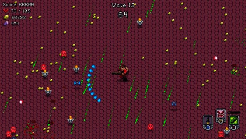 在《Cards and Guns》中,玩家将置身于一个俯视角的竞技场,面对一波又一波不断增强的怪物围攻。通过选择不同类型的卡牌和升级选项,你可以打造属于自己的独特构筑流派,无论是火力全开的霰弹流,还是持续输出的能量武器搭配,都能找到适合你的生存之道。