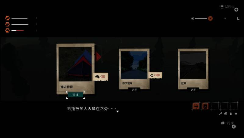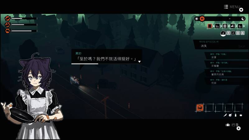 除了主线剧情外,游戏中还加入了生存与料理系统。玩家需要收集食材制作料理,维持饱腹度与体力等关键数值。特定菜品不仅影响角色关系,还能触发新的对话和剧情分支。例如,成功制作“布丁”不仅能恢复状态,更能深化两位主角之间的情感纽带。此外,在岔路口做出的选择将决定后续故事走向,夜晚还需寻找安全屋过夜,否则旅程可能被迫中断。