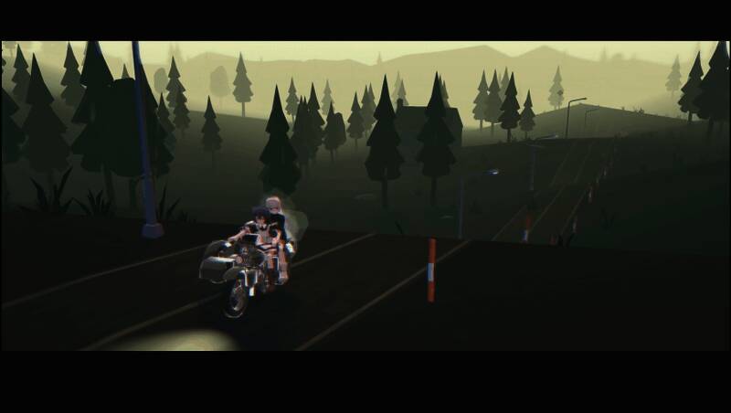 游戏的最大特色在于其动态剧情系统——只有当玩家驾驶摩托车前行时,故事才会实时推进。停车将暂停叙事节奏,而倒车则可回顾过往对话,增强对关键信息的理解。这种设计打破了传统文字冒险游戏的静态模式,使旅途本身成为故事演进的核心载体。