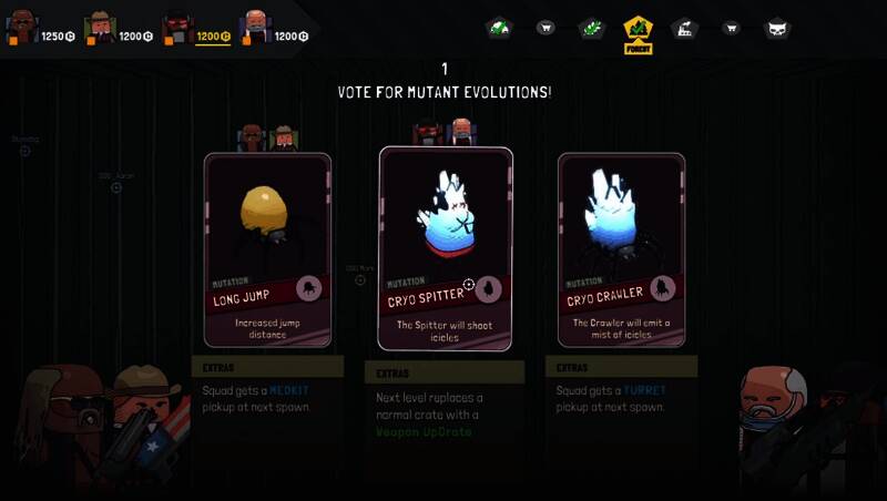 游戏采用Roguelike成长机制,任务间歇期间,玩家需共同投票决定敌人的突变方向(如增强防御或释放毒液),同时为自己选择短期增益或长期升级,平衡风险与收益。