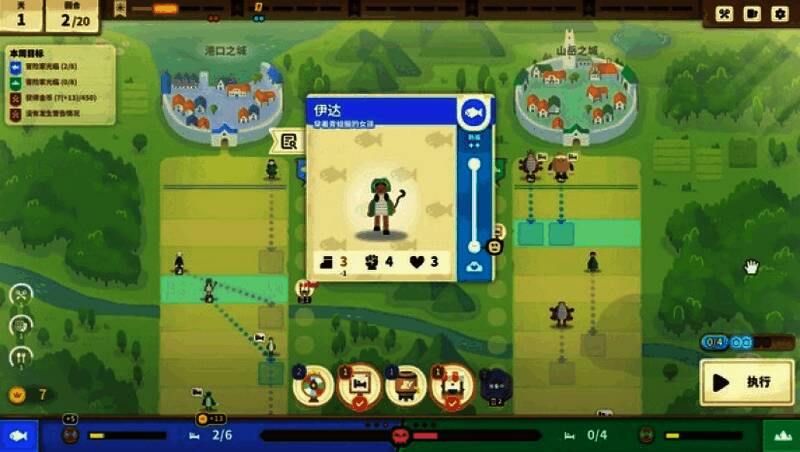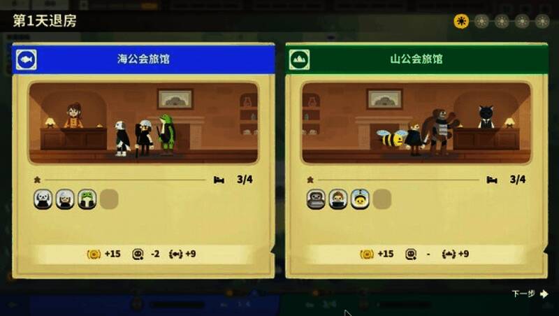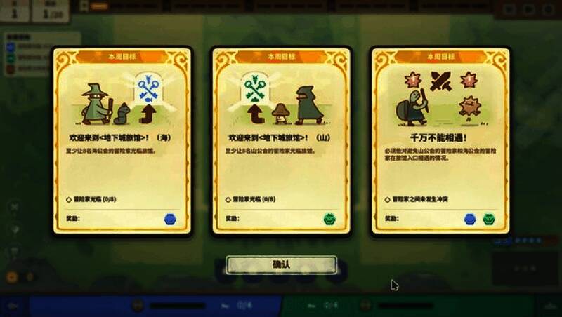 游戏每轮经营周期设定为五天,每天分为四个节点。海族和山族的冒险者会从左右两侧进入,按照自身行动速度向前移动。玩家能在其行进路线上放置各种设施,像招牌可勾起旅客的住店欲望,小吃摊能让路过旅客消费并放慢速度,能量饮料可使经过的冒险者加快步伐,幸运大转盘能强制路过旅客停下。设施有使用时间和冷却时间,且需消耗能量,能量每节点恢复1点,每日旅客离店时会大量恢复。