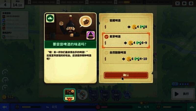 山族与海族冒险者碰面就会相互厮杀,这会造成顾客流失且使怀疑值上升,一旦怀疑值满格,游戏就宣告失败。玩家可借助小吃摊减速、能量饮料加速和幸运转盘停步来调整顾客的预计位置,避免冲突发生。若实在无法阻止,还能派出“精灵战士”助一方获胜,提升阵营方好感度、降低怀疑值。