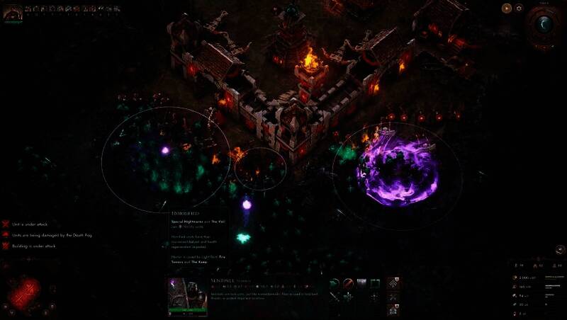 游戏的故事背景设定在被致命迷雾“帷幕”所笼罩的王国遗迹之中。曾经繁荣昌盛的王国,因死亡之雾的不断蔓延而几近失去生机。玩家要在这片黑暗的土地上,建设人类最后的堡垒,抵御无尽的噩梦入侵,探寻背后隐藏的秘密与希望。