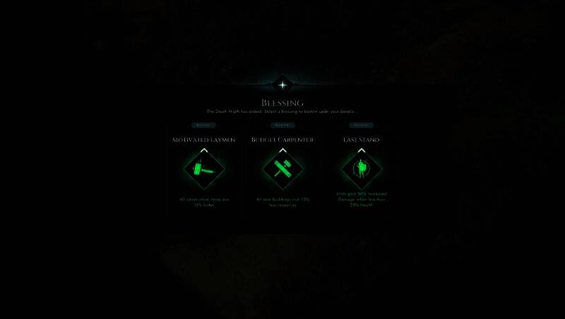 游戏引入了 Roguelite 类型的随机元素,每个“死亡之夜”都会随机给予折磨和考验。成功生存下来的玩家可以在三个随机祝福中选择一个,为军队带来优势。