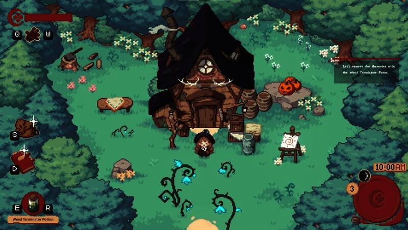 玩家能在森林、村庄等场景自由探索,收集草药、矿石等原料,发现隐藏宝藏、特殊道具与捷径,还可将遇到的生物信息记录在“女巫图鉴”。