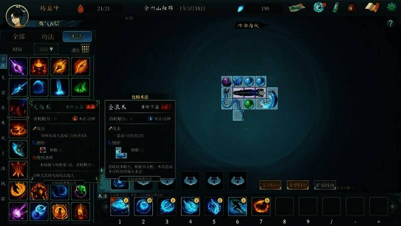 玩家可以通过击败强大的敌人、奇妙的巧合或者意外的机遇获得功法和法术。将这些技能进行合理且巧妙的组合,就能释放出更强大的力量,以此战胜更为强劲的对手。
