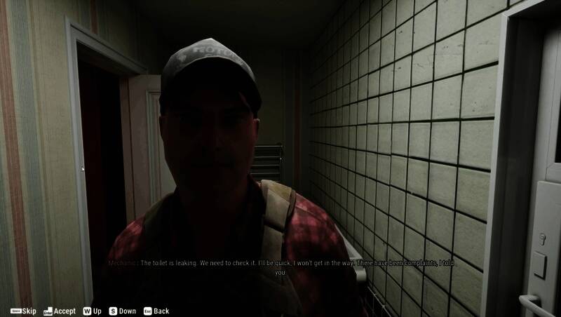 游戏摒弃了传统的解谜与战斗机制,以对话驱动为核心玩法,玩家通过与前台员工及神秘住客的交流获取线索,提问选项直接影响剧情走向与真相揭露节奏。同时,环境中的细节如墙壁敲击声、门缝阴影、电话中的沙哑质问等都需要玩家主动观察与分析。特别引入的“动态窥视系统”让视线偶尔模糊或扭曲,使玩家始终怀疑是否被某种存在监视,进一步强化了不安情绪。