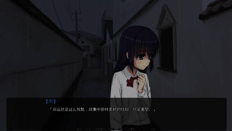 在画面呈现上,《雨的恋记》采用手绘风格背景,整体色调偏灰蓝,完美契合雨天主题。角色立绘虽无动态效果,但通过静态差分实现表情变化。界面设计简洁直观,特效方面主要依靠基础转场如雨幕渐变、记忆闪回等来增强代入感。受限于开发能力,游戏中未加入配音及高质量动态CG,但仍能满足视觉小说的基本需求。