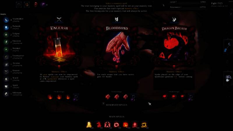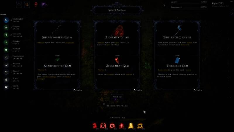 在《弑神者竞技场》中,每一场战斗都是一次对玩家构筑能力的全面考验。游戏的核心在于法术之间的配合与排列顺序,玩家需要根据当前获得的法术特性来调整阵型。每个法术都带有独特“特性”,当集齐三个相同特性的法术时,还能触发强化效果,并升级为更强形态。