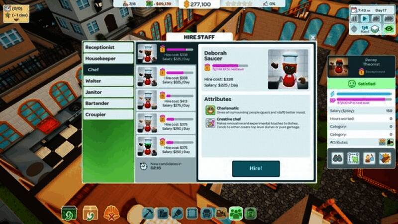 从空无一物的土地上构建起一座繁华的酒店是《酒店建筑师》的核心玩法之一。你可以自由设计每一层楼的布局,雇佣工人建造客房、餐厅、娱乐设施等关键区域。随着资金的积累,还能不断扩建,提升酒店容量和服务档次。