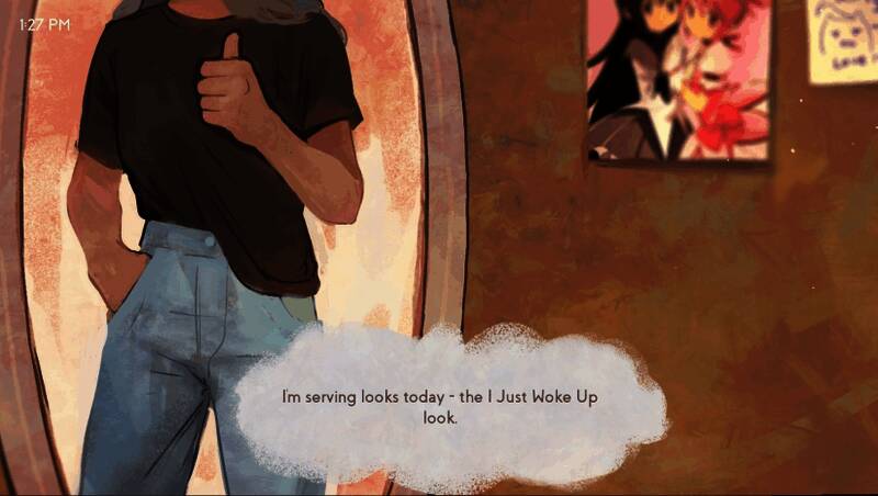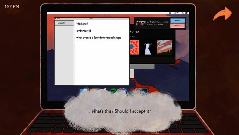 故事围绕两名女大学生的宿舍生活展开:玩家扮演的主角在收到一条署名“goth gf's iPhone”的暧昧AirDrop讯息后,必须在虚拟社交与现实生活之间做出抉择。室友May长期受抑郁症困扰,面临家庭压力与自我认同危机。玩家的选择将决定她是否能获得帮助,还是陷入无法挽回的悲剧。这一设定不仅增强了代入感,也映射了现实中精神健康问题被忽视的普遍现象。