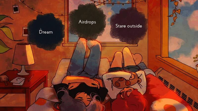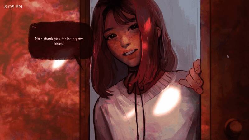 游戏通过两种核心互动路径推进剧情:一是在线上回复AirDrop消息,发展网络恋情;二是主动关注室友May的情绪状态,倾听她的困境并尝试给予支持。整个流程约需1小时,最终导向四个不同结局——“错过(missed)”、“幸存者(survivor)”、“希望(hope)”与“原谅(forgive)”。这些结局的走向完全取决于玩家是否察觉May的自毁倾向并及时干预。