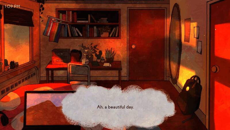 游戏采用柔和的水彩画风,色彩通透且充满情感张力,配合温馨却略带哀伤的配乐,营造出强烈的沉浸式氛围。场景细节如散落的书籍、May的毛衣与表情变化,均暗示其心理状态。结局切换时的色彩突变,如葬礼场景的灰暗色调,以及飘雪、屏幕闪烁等动态元素,进一步提升了视觉冲击力。音效方面,适时的静默与环境声(如敲门声)则有效增强了叙事张力。
