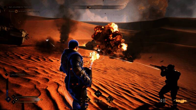 面对炙热的阳光、肆虐的沙暴以及潜伏于沙海之下的致命沙虫,玩家必须掌握一系列生存技能。从制作蒸馏服收集水分,到从敌人尸体中提取血液维持生命,每一步都考验着智慧与勇气。同时,动态变化的世界环境——如每周出现的科里奥利风暴会重塑地貌,迫使玩家不断适应新的资源分布和探索路径。