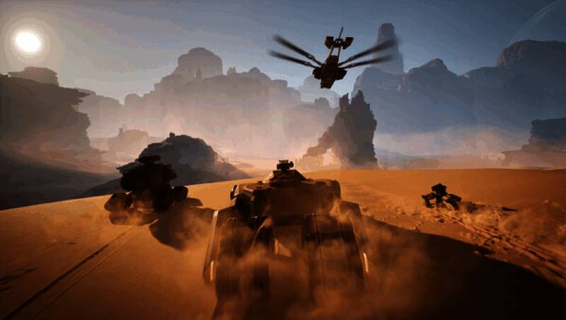 美术风格忠实还原电影《沙丘》的宏大美学,融合广袤无垠的沙漠、哈克南工业要塞与厄崔迪古典宫殿,营造出强烈的末日氛围与压迫感。无论是沙虫破沙而出的震撼瞬间,还是沙暴席卷天地的壮观景象,都令人仿佛置身于真实的厄拉科斯。