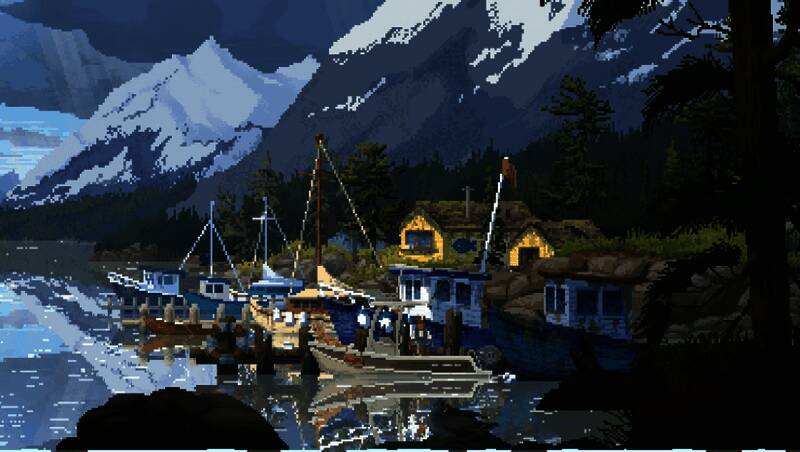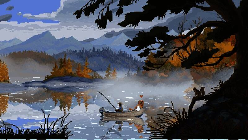 本作采用精致的手绘像素美术风格,尤其在水体表现方面极具质感。波浪的动态光影反射与鱼群游弋轨迹均以细腻动画呈现,带来“流动的油画”般的视觉体验。场景设计在写意与写实之间取得平衡——湖泊静谧、河流湍急、深海幽邃,再搭配环境音效如水流声与收线时的机械音,进一步强化沉浸感。鱼类的像素造型不仅辨识度高,也准确还原了它们的生态特征,玩家可通过外形逐步识别不同物种。整体画面以低饱和色调为主,辅以柔和光影,营造出平和而治愈的游戏氛围。