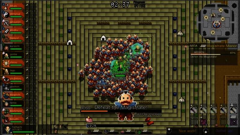 《一揆团结》讲述了一群传奇英雄为对抗蝗虫瘟疫而集结奋战的故事。在这个融合了roguelite元素的弹幕地狱中,最多支持16名玩家组队挑战关卡。从复古像素风画面到充满恶搞精神的叙事风格,游戏处处致敬原作,同时注入现代多人玩法的新鲜血液。