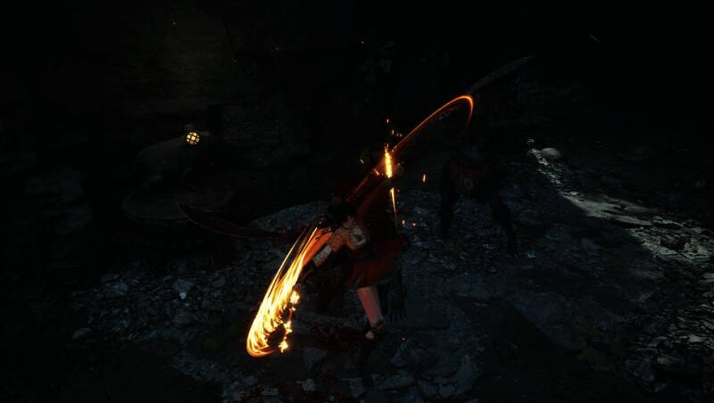 游戏中,剑刃在格挡和攻击中会逐渐损耗耐久,一旦断裂必须即时切换武器。而切换过程中还可触发如“出鞘练火斩”等派生技,搭配可自定义的机械义肢战技,形成多变连招体系,考验玩家的临场判断与战术选择。