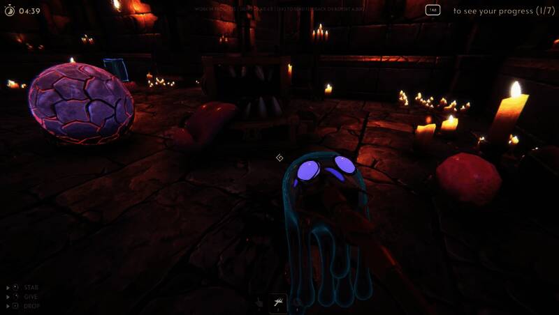 游戏采用明亮卡通风格,角色造型诙谐夸张,地牢场景则融合了苔藓石墙、魔法符文等奇幻元素与写实的脏污细节。动态效果表现突出,史莱姆工具的弹性变形、陷阱重置时的机械动画,以及角色之间的滑稽表情和动作,都为游戏增添了极强的视觉解压感与沉浸体验。