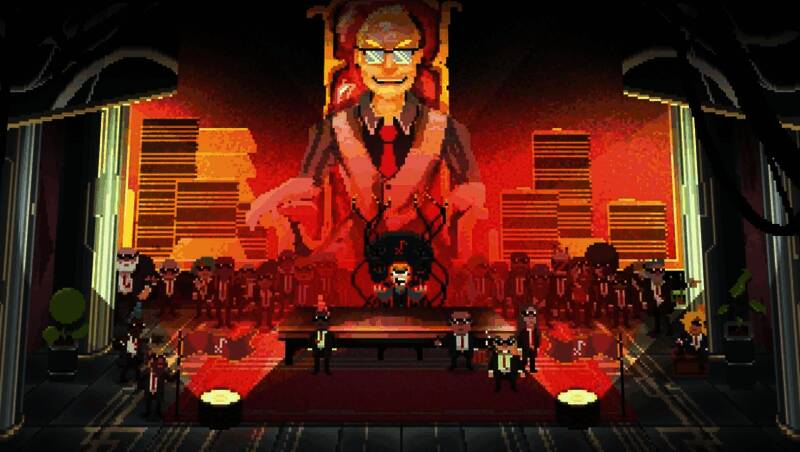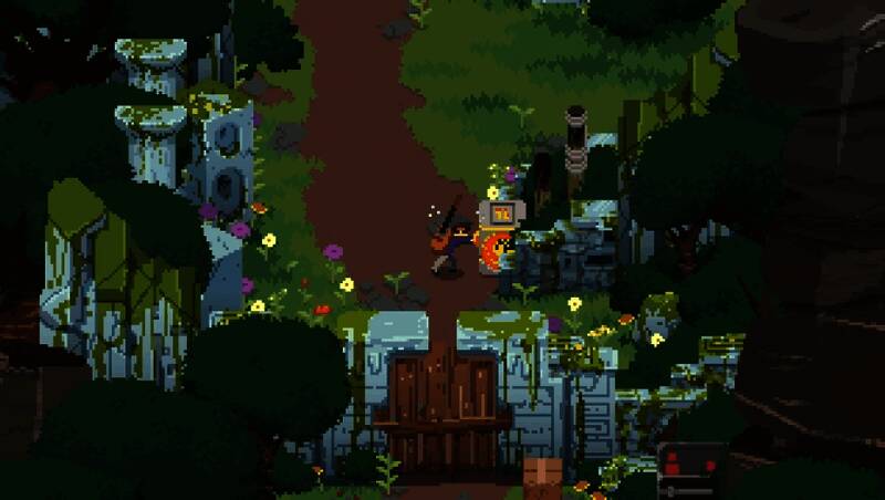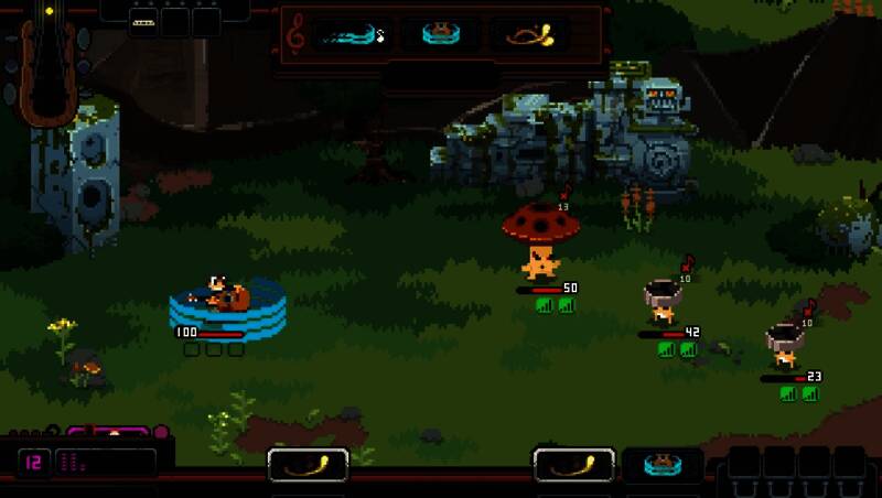 在画面表现方面,《Fretless-The Wrath of Riffson》同样令人惊艳。场景设计中,岩石随节拍震动、植物化作音符跳跃,生物群落以霓虹色块区分,如电子乐区的荧光像素、民谣区的暖色调,营造出极具音乐氛围的奇幻世界。战斗特效方面,电吉他攻击释放电流波纹,鼓点爆炸伴随粒子扩散,Boss战加入镜头抖动与复古滤镜,强化节奏张力。角色造型则融合蒸汽朋克与金属美学,如机械齿轮镶嵌的贝斯、扬声器组成的怪物躯体,呈现“可交互的像素交响乐”。